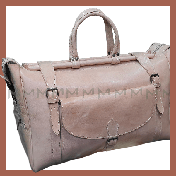 حقيبة السفر الجلدية هذه مصنوعة يدويًا من قبل حرفيين مغاربة معروفين بتاريخ أجدادهم في الجلد.