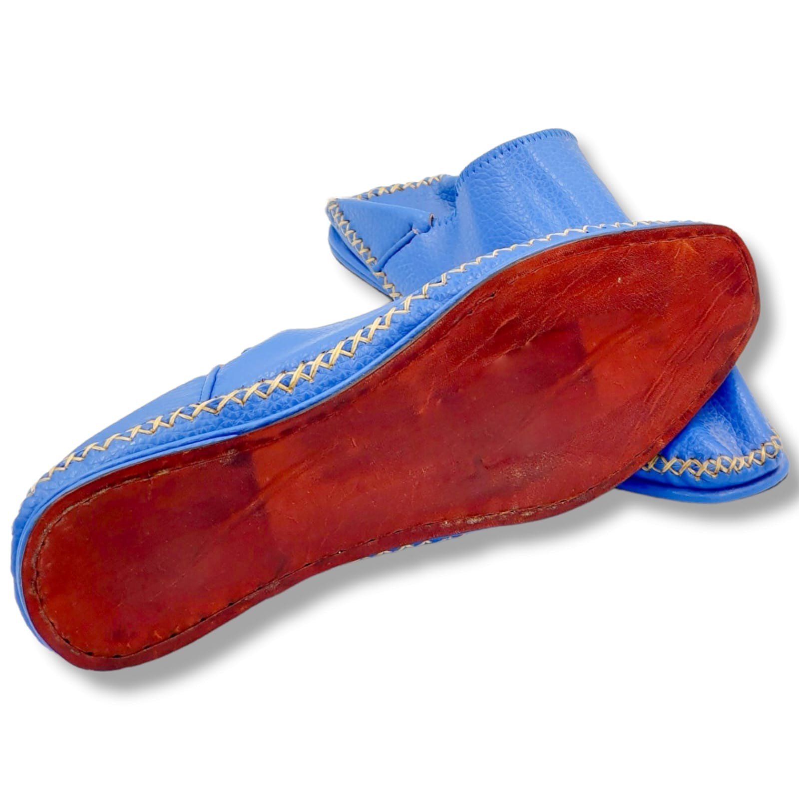 Ce modèle de chaussure babouche en cuir est fabriqué à la main par des artisans dans les tanneries de Fès, une ville connue depuis plus de 1000 ans par le travail artisanal ancestral dans le cuir de haute qualité et de manière 100% traditionnelle.