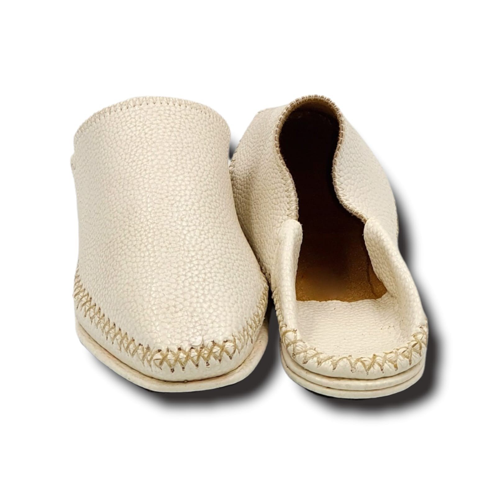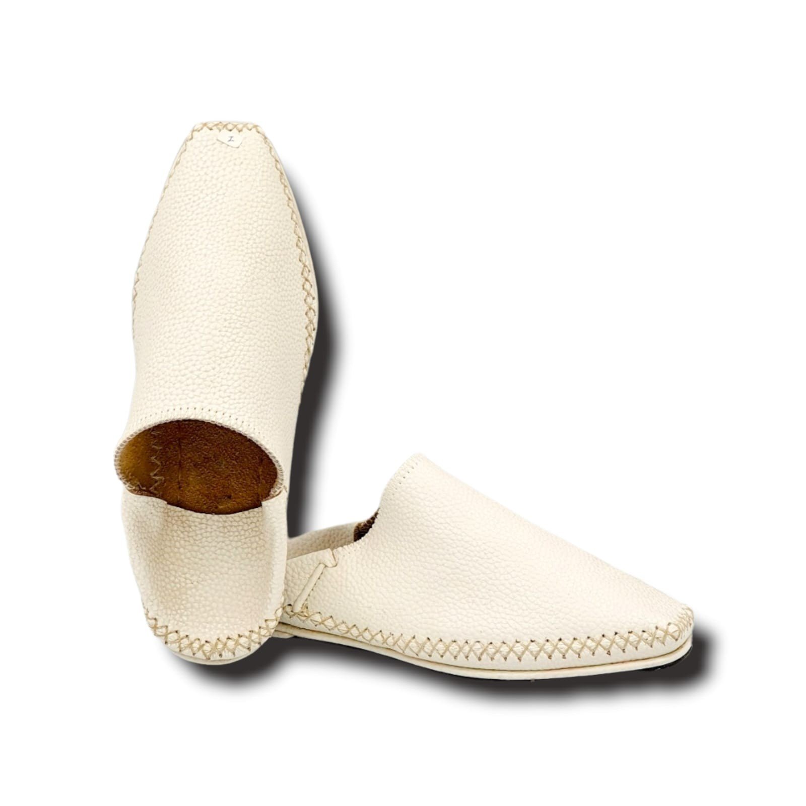 Ce modèle de chaussure babouche en cuir est fabriqué à la main par des artisans dans les tanneries de Fès, une ville connue depuis plus de 1000 ans par le travail artisanal ancestral dans le cuir de haute qualité et de manière 100% traditionnelle.