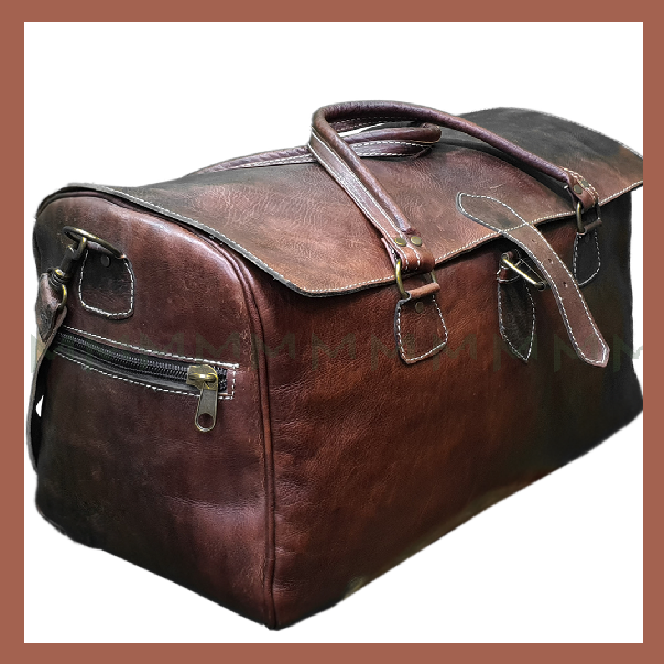 תיק נסיעות מעור זה עשוי בעבודת יד על ידי אומנים מרוקאים הידועים בהיסטוריה האבותית שלהם בעור.
